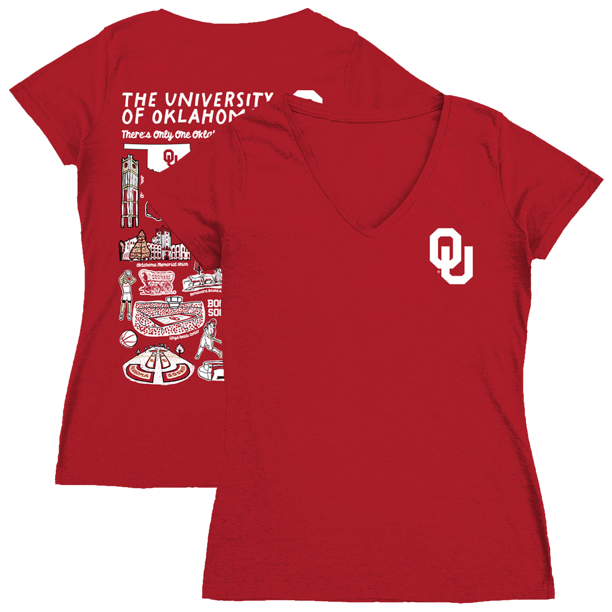 Women’s Vive La Fete Crimson Oklahoma Sooners Impressions Artwork V-Neck Fitted T-Shirt Sign up for ESPN+ now to stream live OU Basketball games!