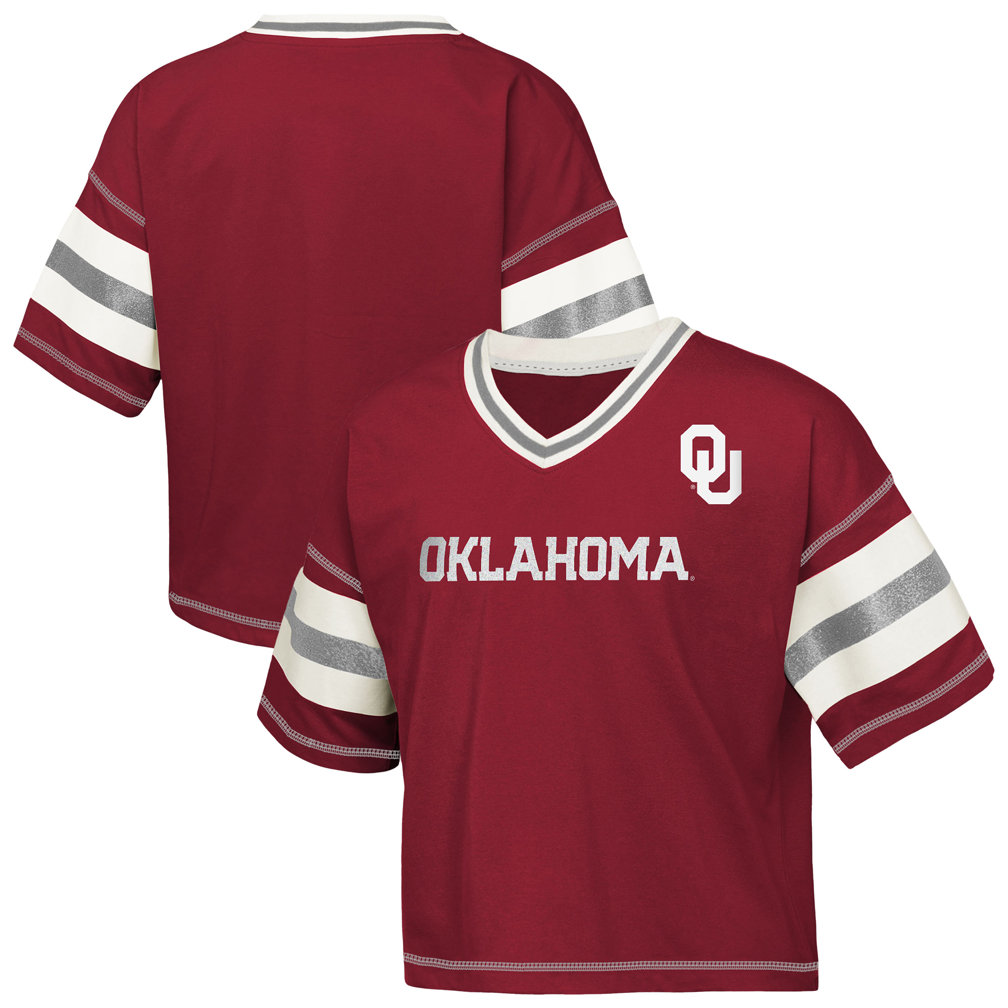 Girls Youth Outerstuff Crimson Oklahoma Sooners Gridiron Jersey V-Neck T-Shirt
