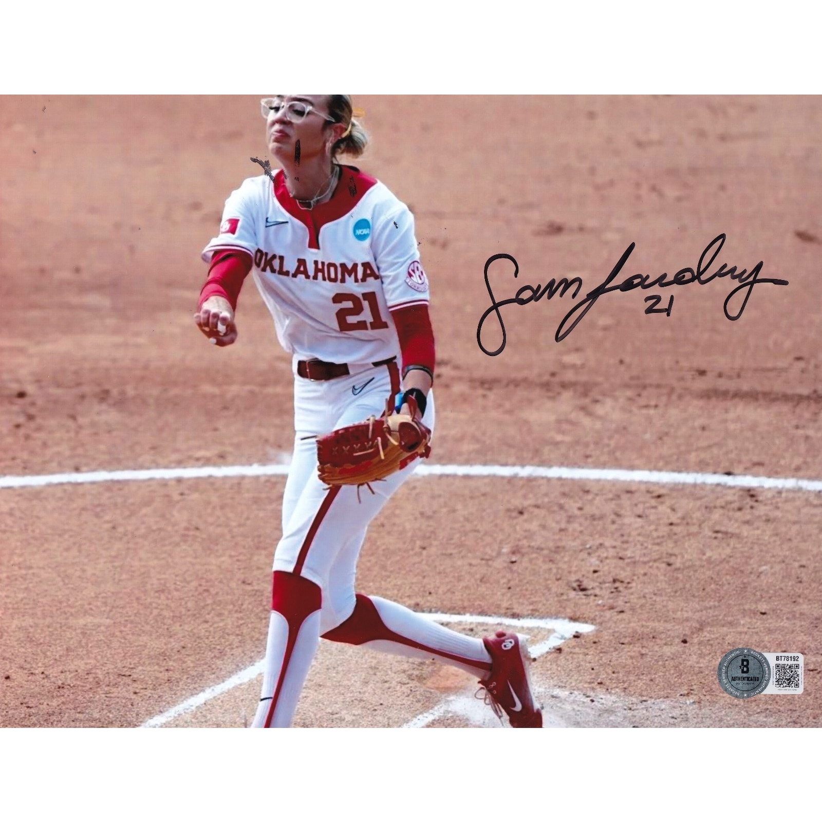 SAM LANDRY signed (OKLAHOMA SOONERS) Softball 8X10 photo BECKETT BAS BT78192 Sign up for ESPN+ now to stream live OU Basketball games!