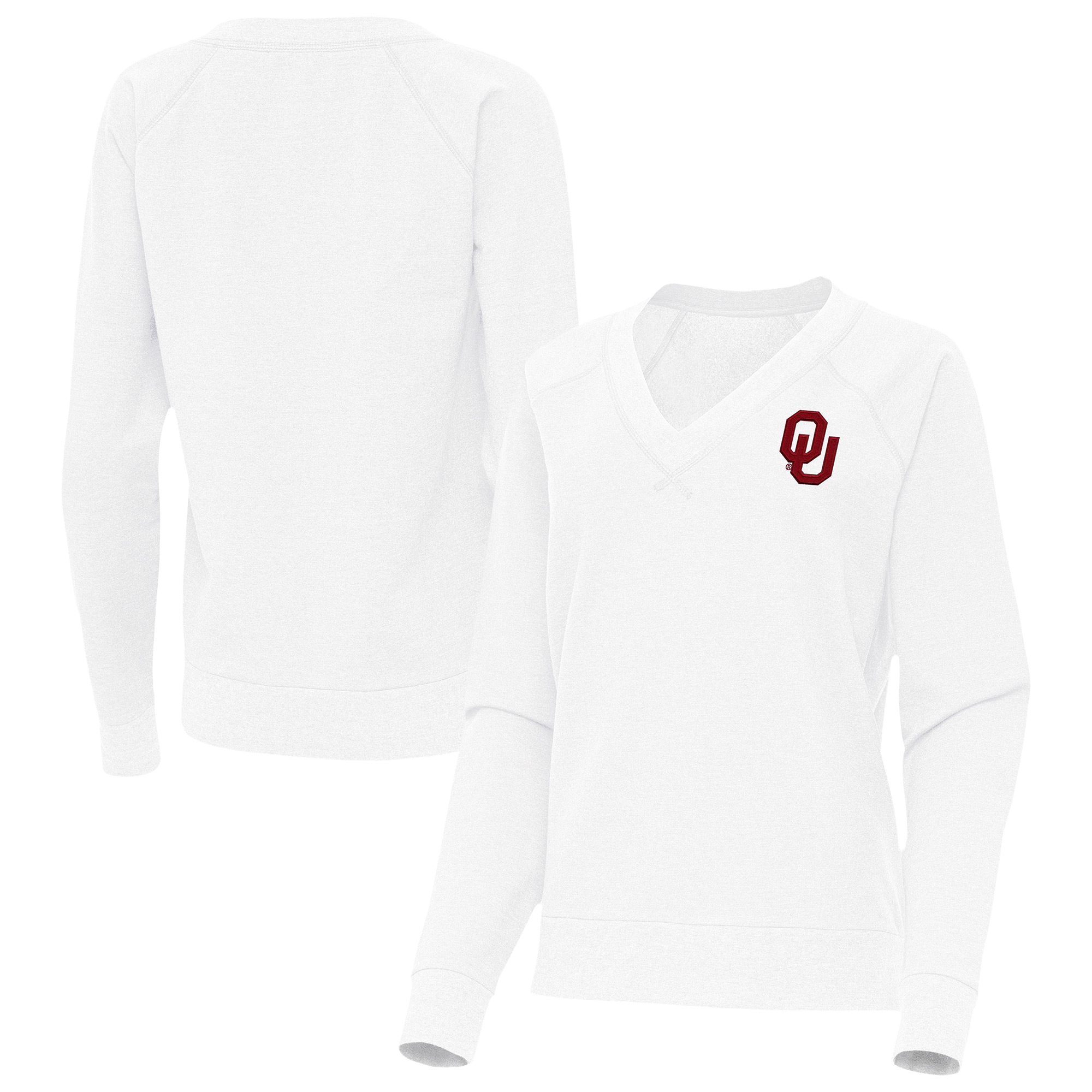 Women’s Antigua White Oklahoma Sooners Varsity V-Neck Tri-Blend Pullover Sweatshirt