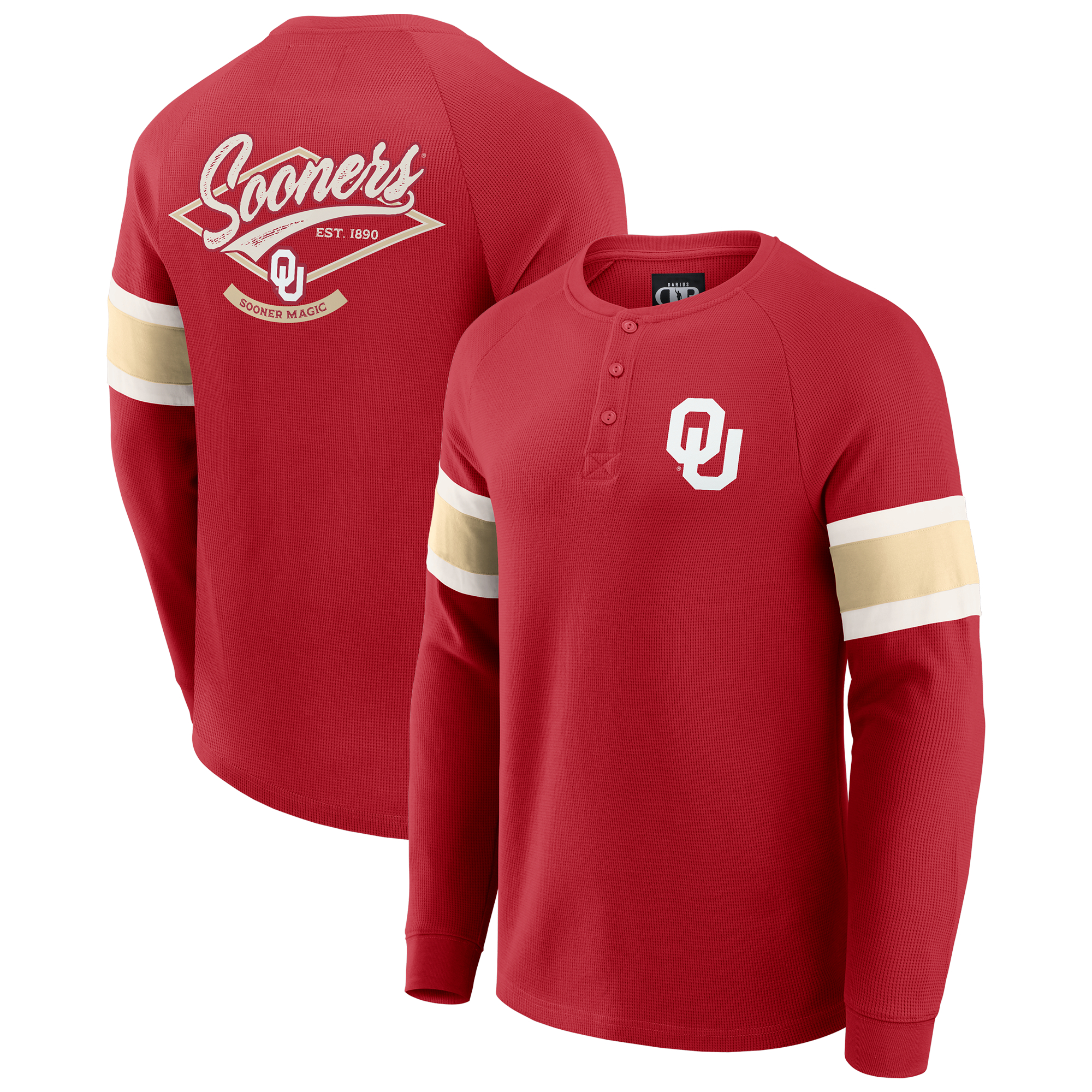 Men’s Darius Rucker Collection by Fanatics Crimson Oklahoma Sooners Waffle-Knit Raglan Long Sleeve Henley T-Shirt Sign up for ESPN+ now to stream live OU Basketball games!