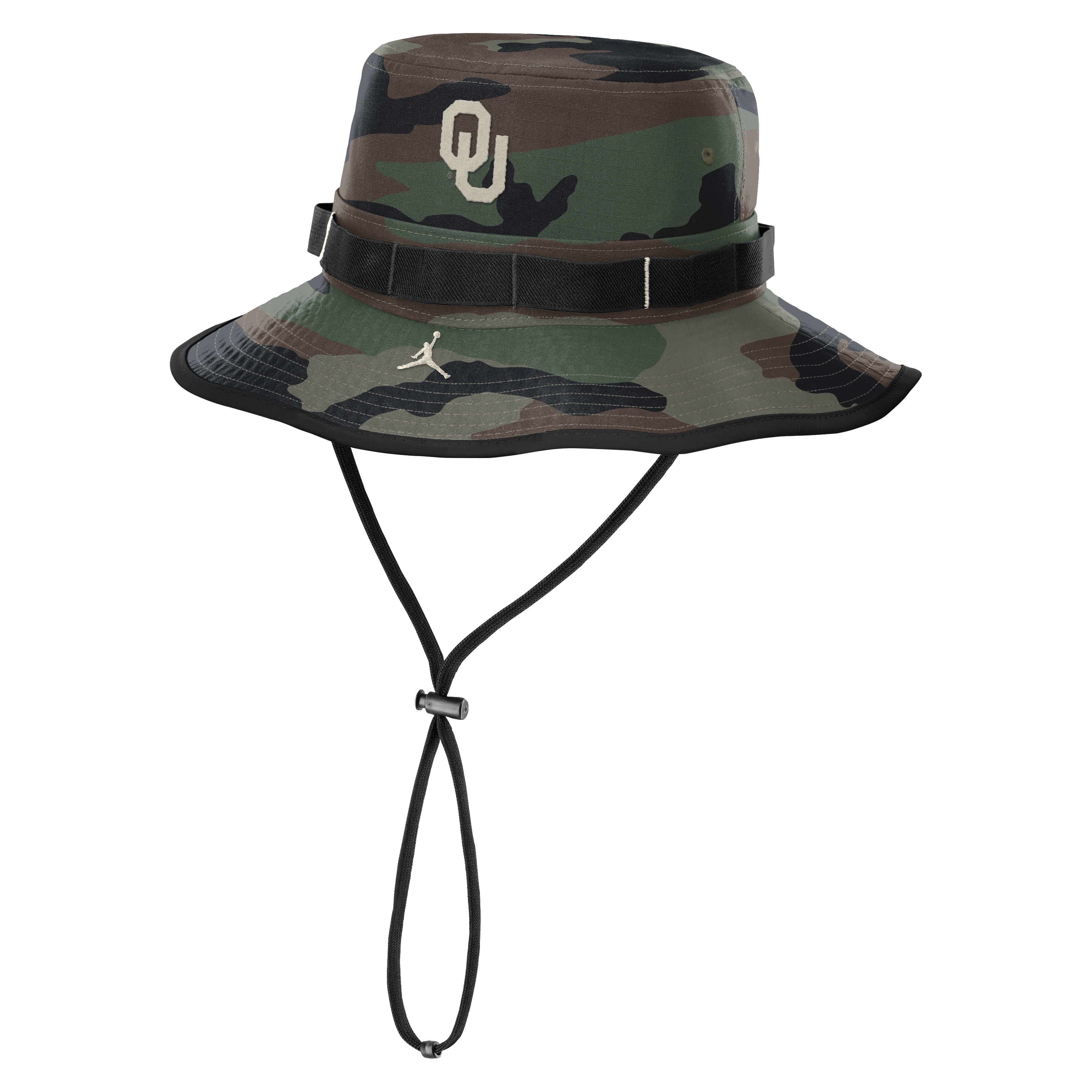 Men’s Jordan Brand Camo Oklahoma Sooners 2025 Military Appreciation Boonie Dri-FIT Bucket Hat Sign up for ESPN+ now to stream live OU Basketball games!