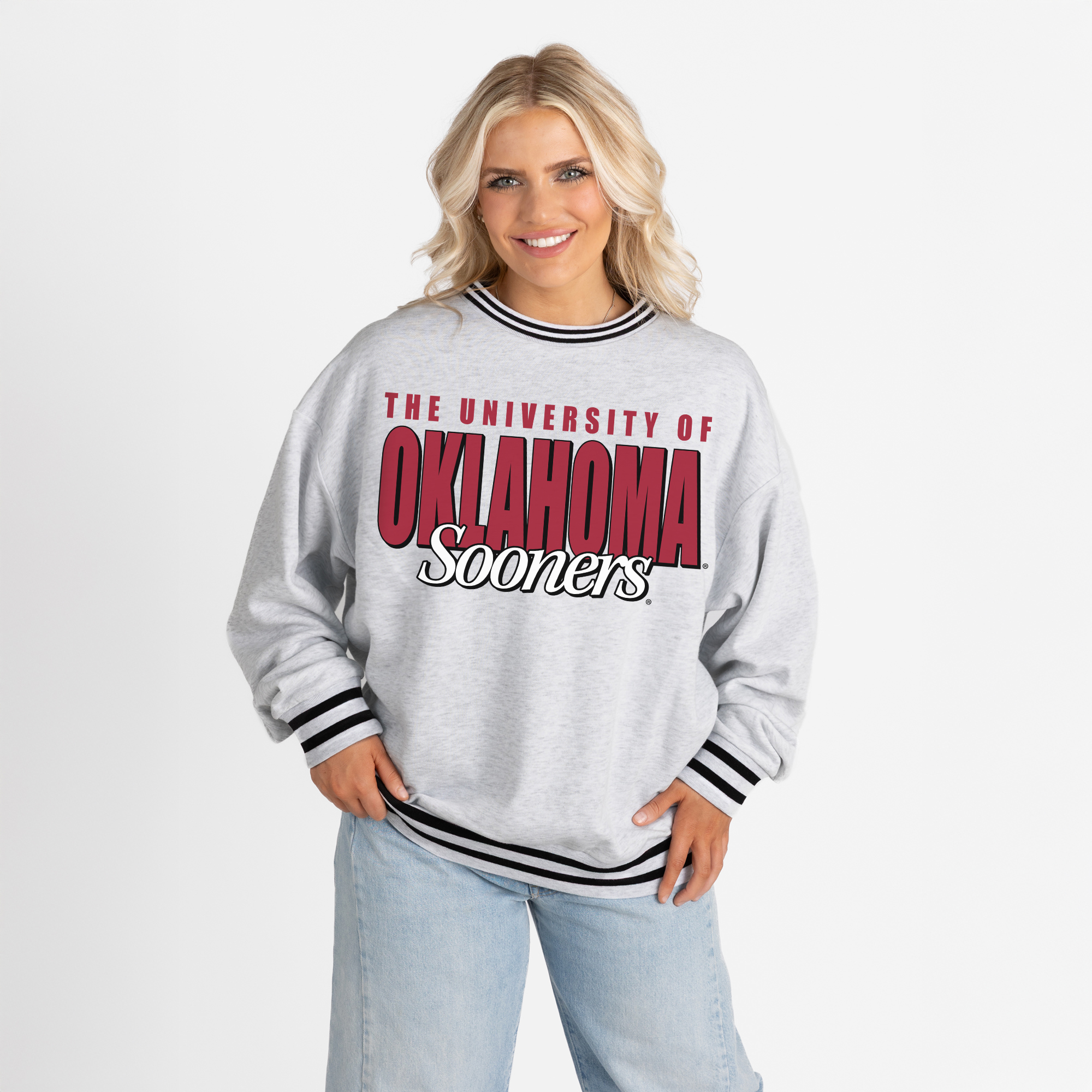 Women’s Gameday Couture Gray Oklahoma Sooners Oversized Showdown Ringer Stripe Sweatshirt Sign up for ESPN+ now to stream live OU Basketball games!