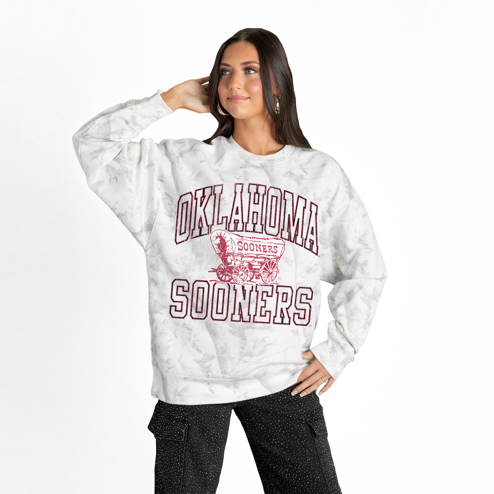 Women’s Gameday Couture Ash Oklahoma Sooners Whiteout Premium Fleece Camo Sweatshirt Sign up for ESPN+ now to stream live OU Basketball games!