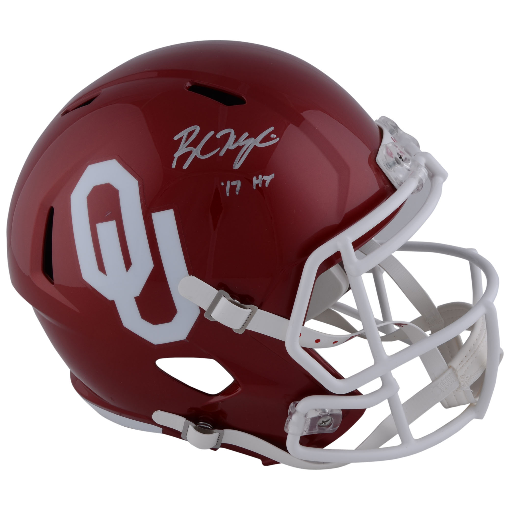Baker Mayfield Oklahoma Sooners Autographed Riddell Speed Replica Helmet with ”HT 17” Inscription Sign up for ESPN+ now to stream live OU Basketball games!