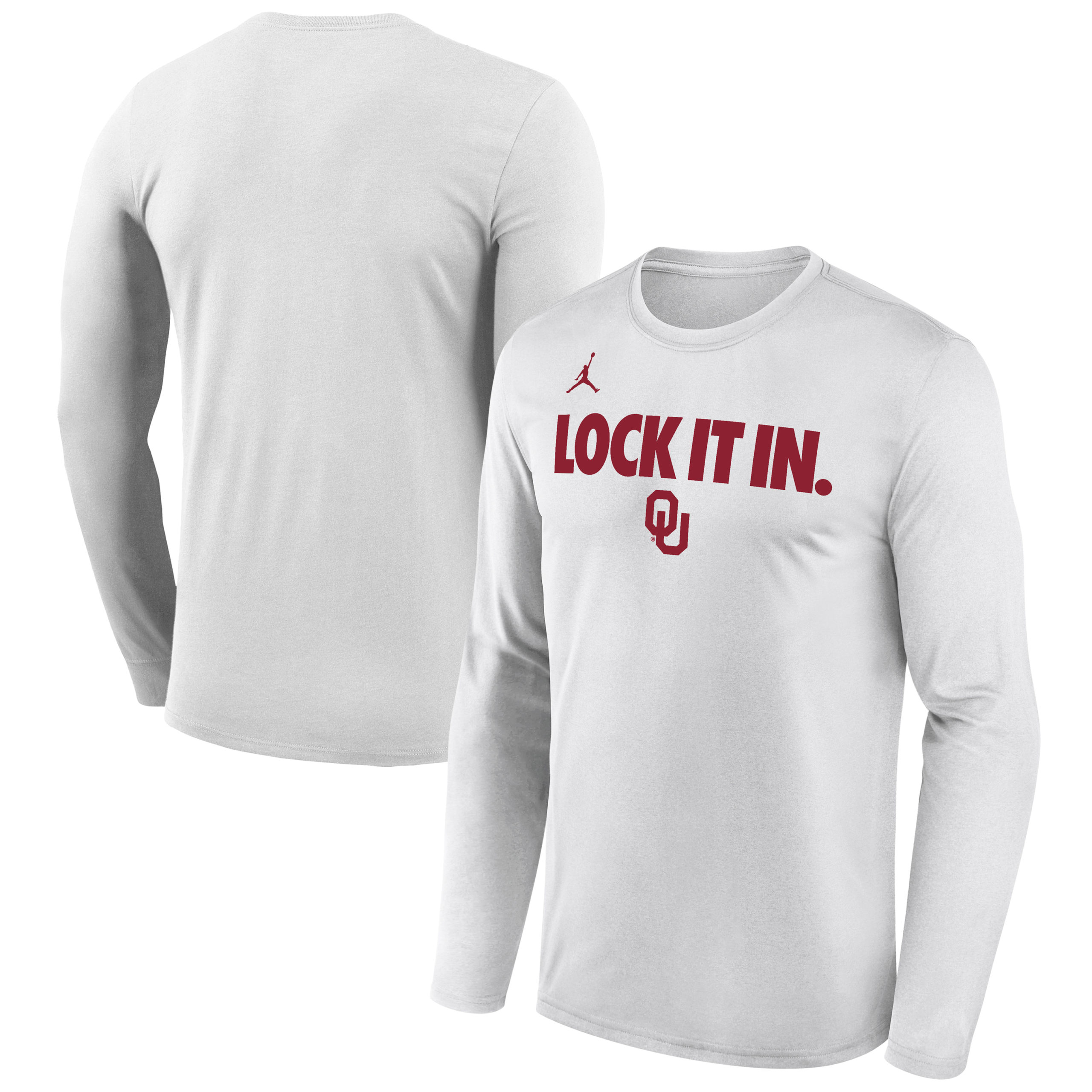 Men’s Jordan Brand White Oklahoma Sooners 2026 On-Court Bench Long Sleeve T-Shirt Sign up for ESPN+ now to stream live OU Basketball games!