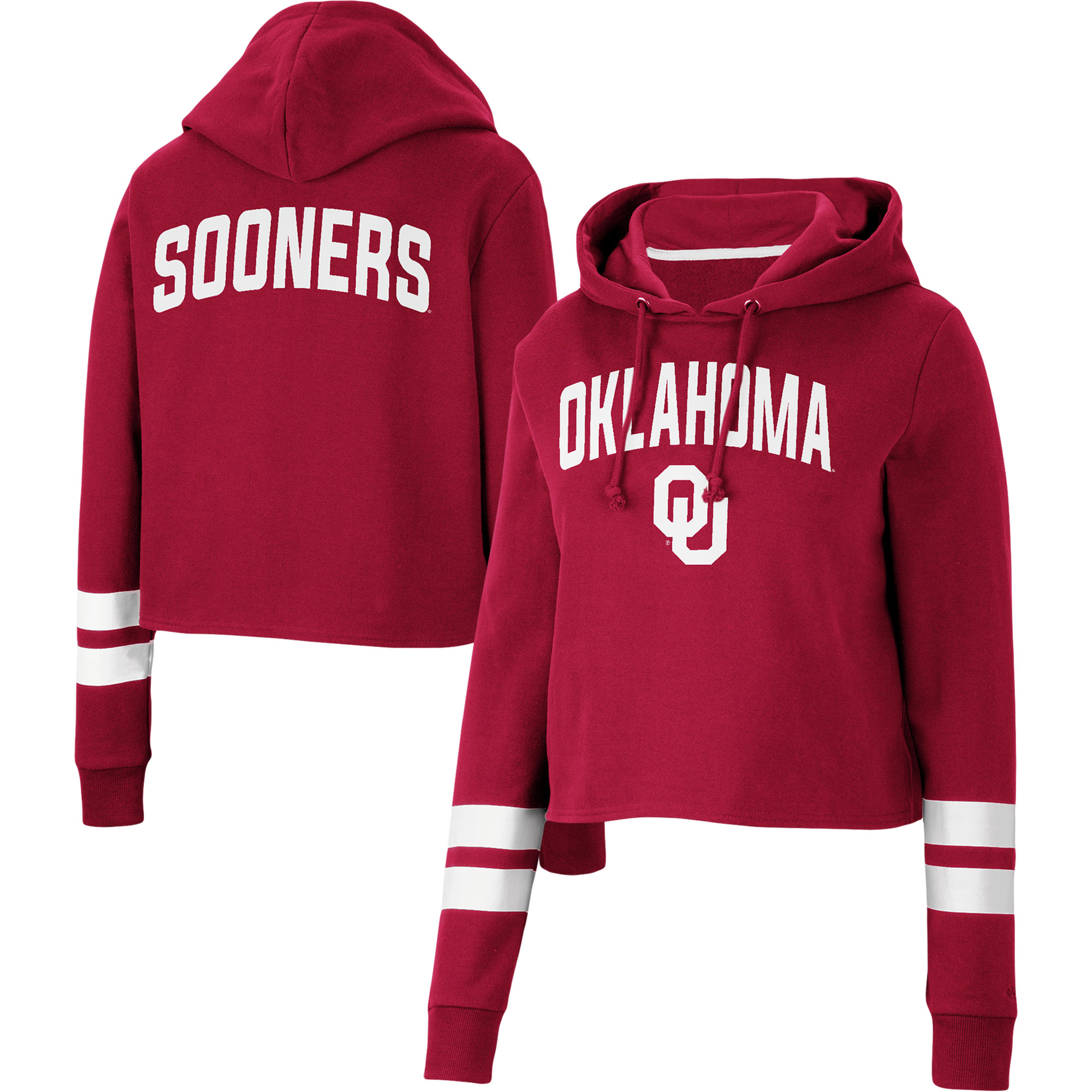 Women’s Colosseum Crimson Oklahoma Sooners Throwback Stripe Cropped Pullover Hoodie Sign up for ESPN+ now to stream live OU Basketball games!